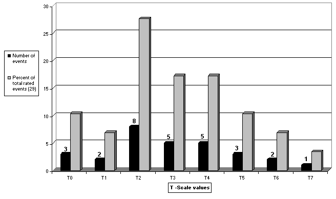 T-scale values of rated tornadoes in Austria