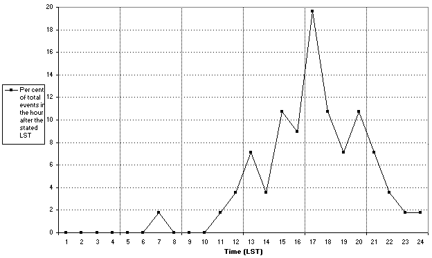 (7) Daytime peak is in the late afternoon hours together with the thunderstorm maximum.