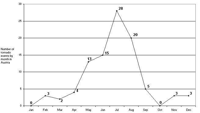 Tornadoes by month in Austria